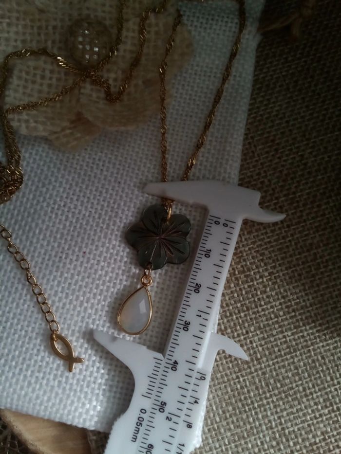 Collier fleur en n'acre et pierre de lune sertie - photo numéro 2