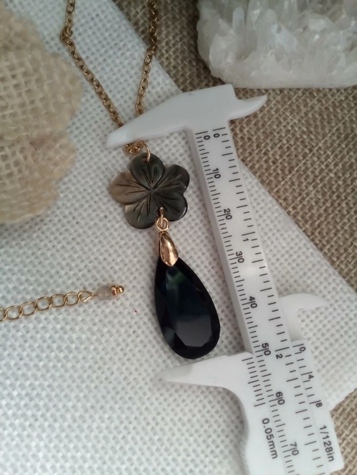 Collier fleur de n'a'c'r'e et pierre obsidienne 🖤. - photo numéro 2