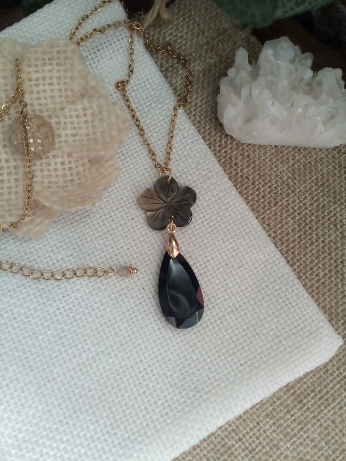 Collier fleur de n'a'c'r'e et pierre obsidienne 🖤. - photo numéro 1