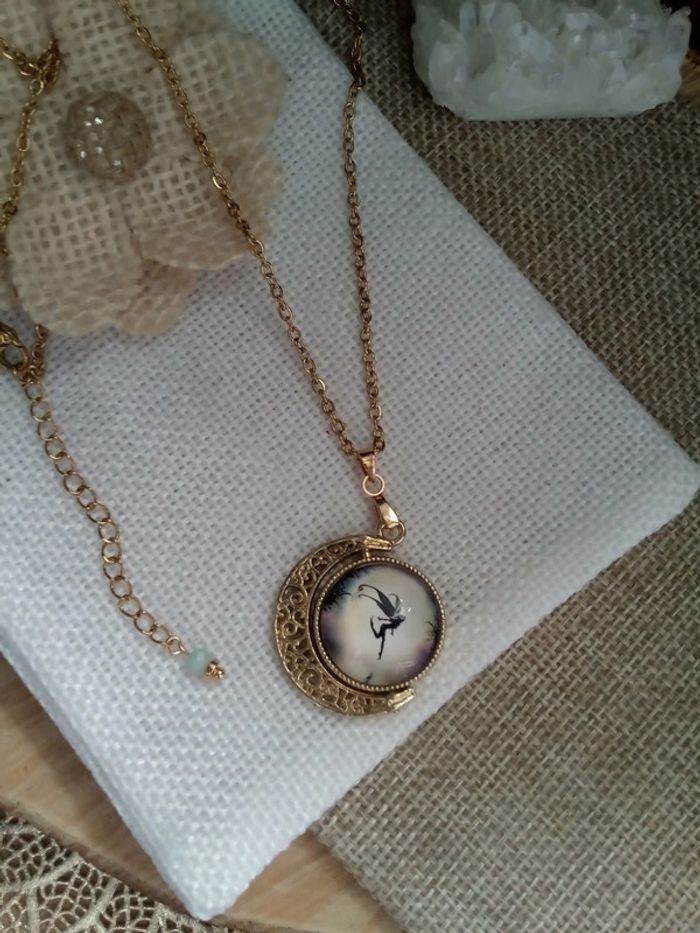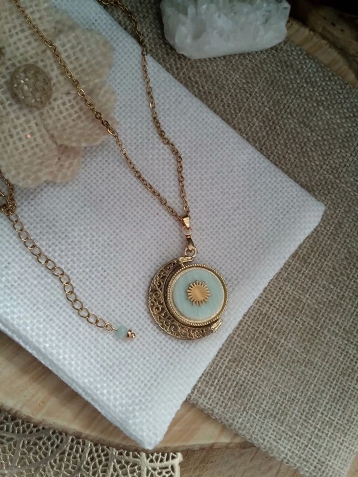 Collier médaillon réversible fée et amazonite - photo numéro 1