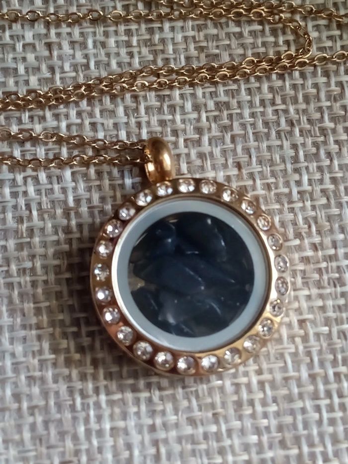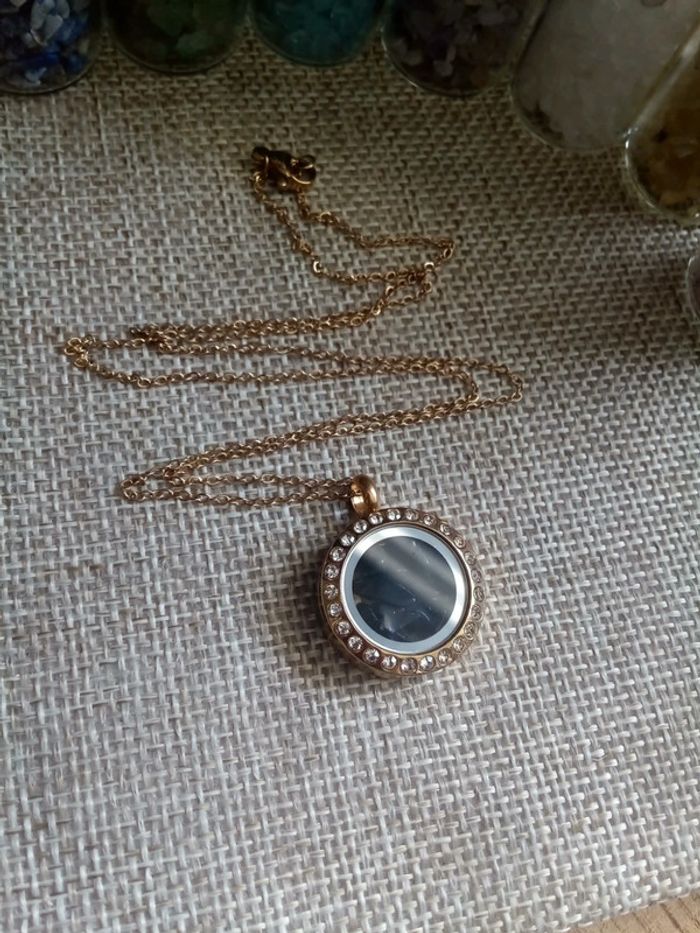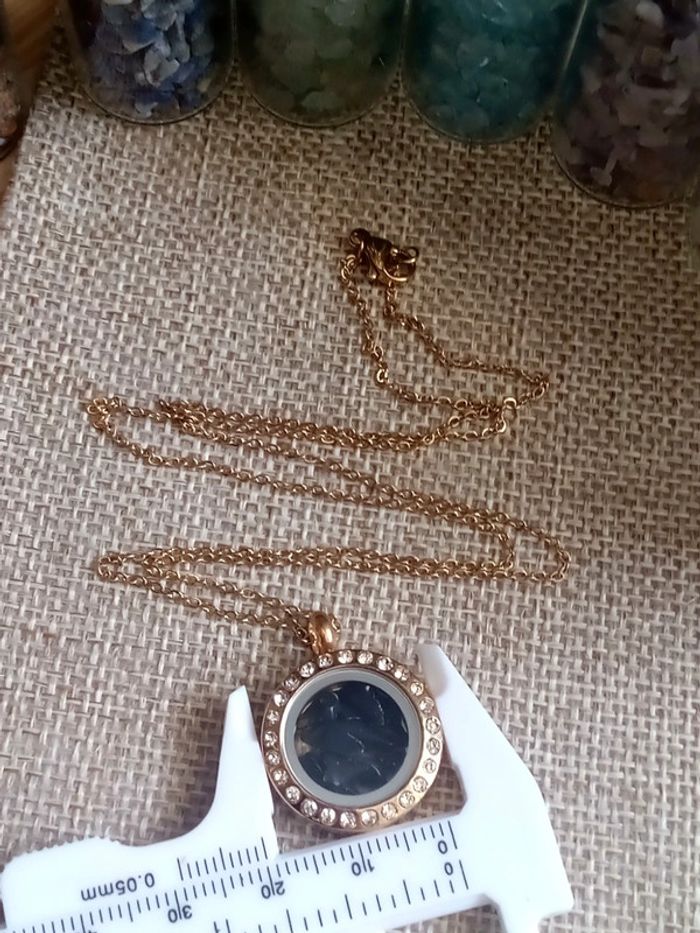Collier pendentif rempli de pierres obsidienne noire 🖤 - photo numéro 1