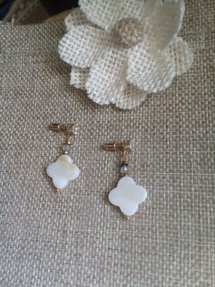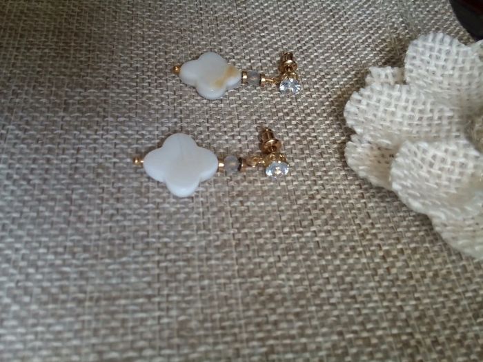 Boucles d'oreilles bohèmes en trèfle de n'a'c'r'e et pierres de labradorite - photo numéro 2
