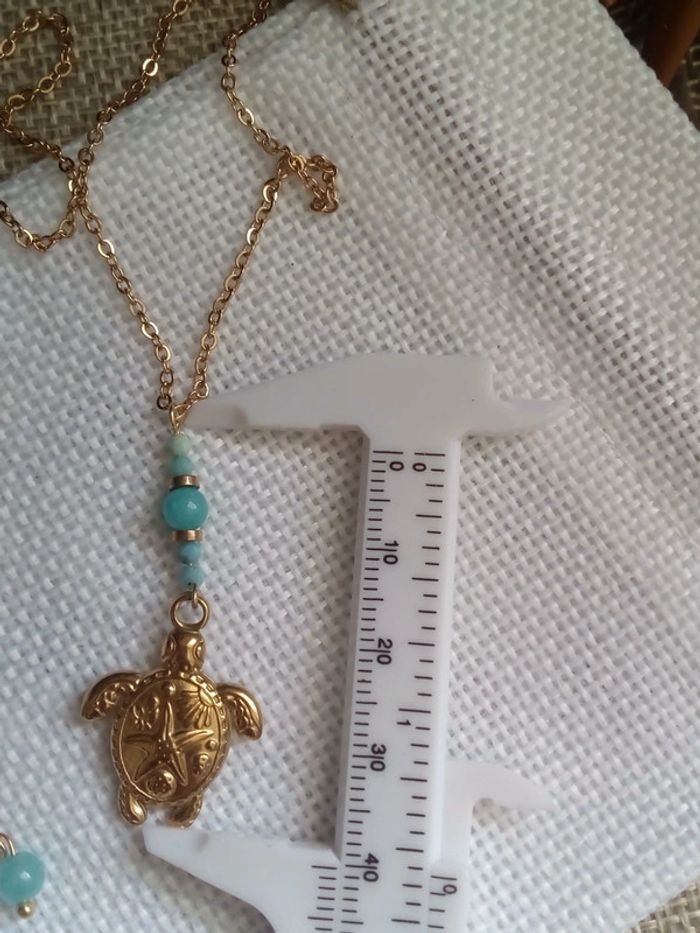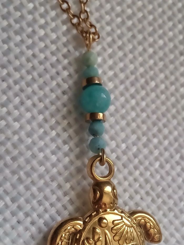 Collier tortue pierres d' amazonite naturelle - photo numéro 3