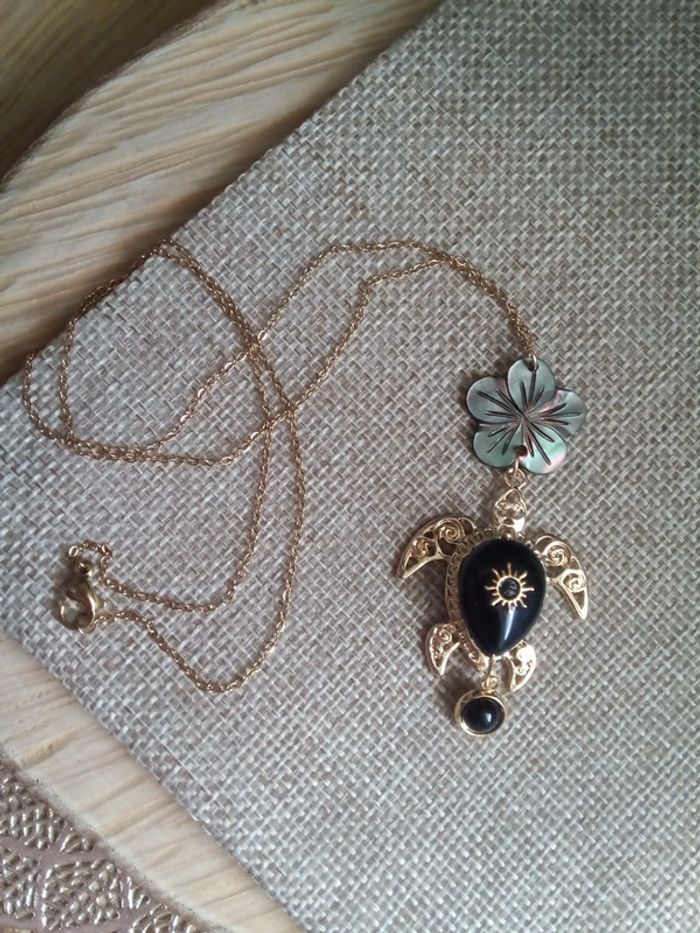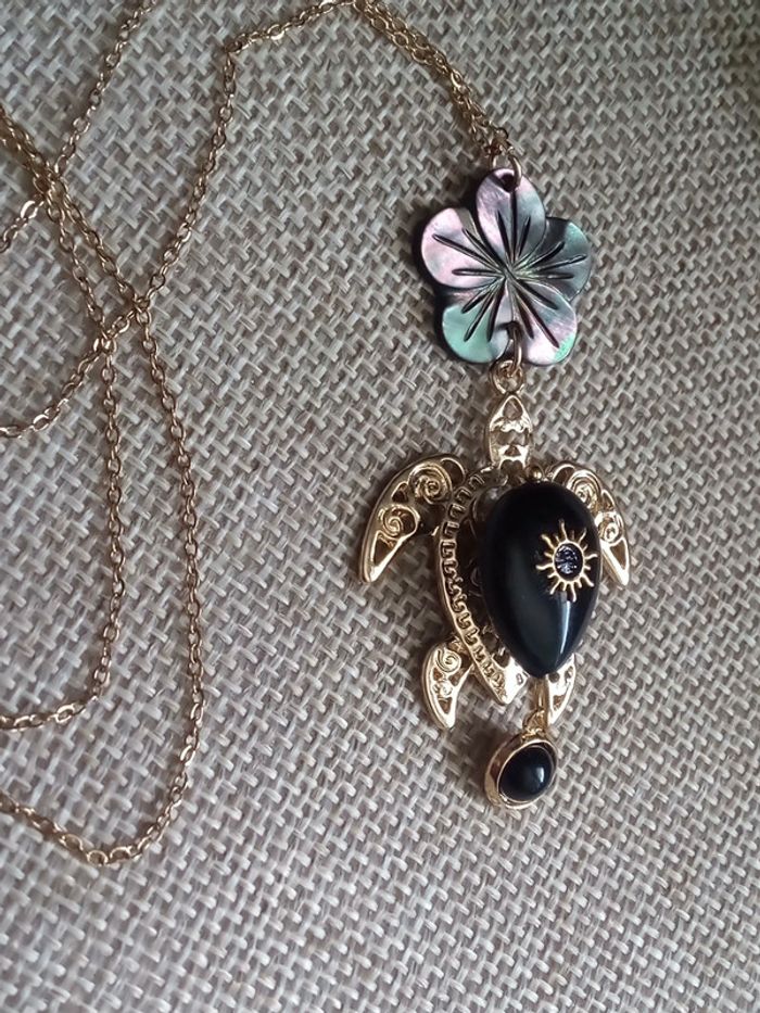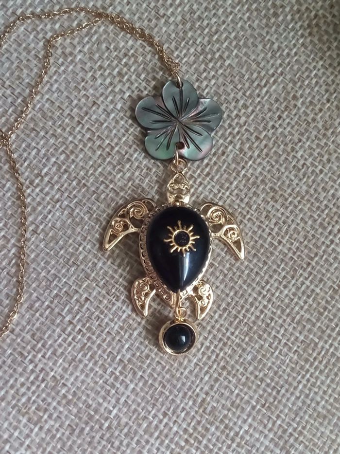 Collier tortue et pierres d'obsidienne naturelles - photo numéro 1