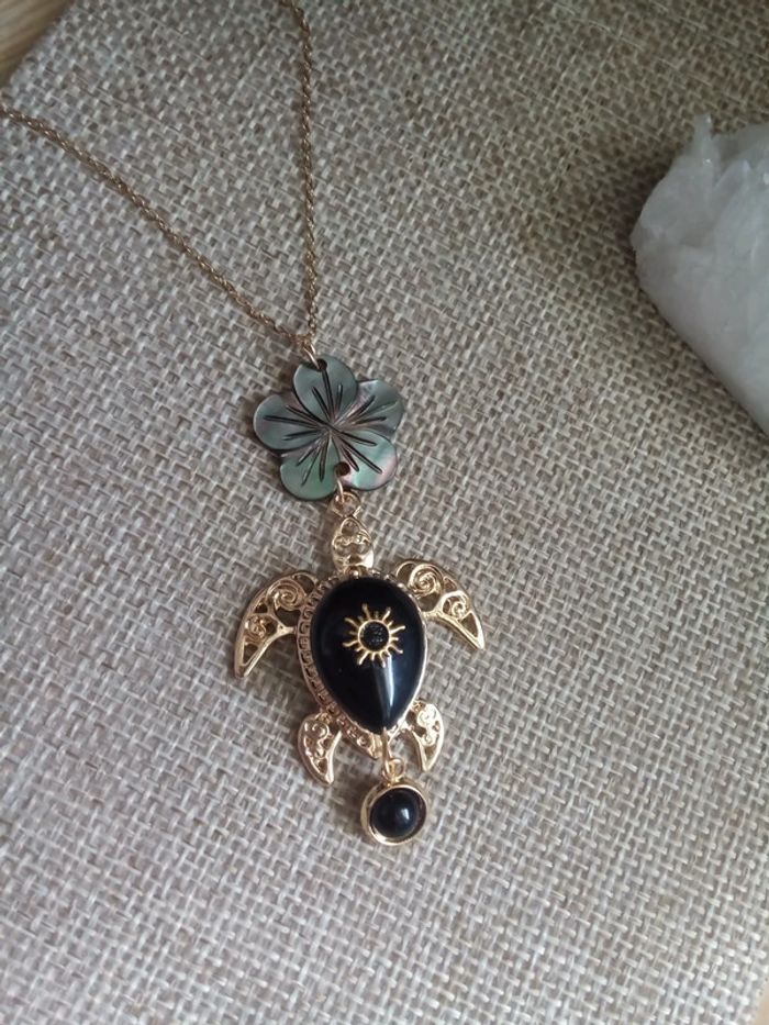 Collier tortue et pierres d'obsidienne naturelles - photo numéro 3