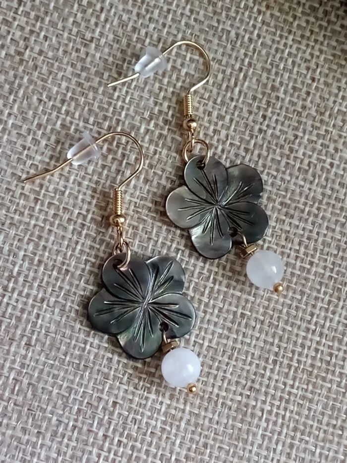 Boucles d'oreilles bohèmes n'acre et pierres de lune - photo numéro 2