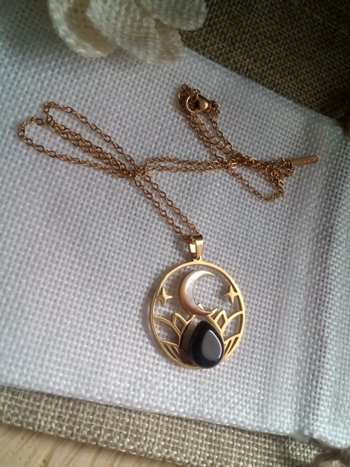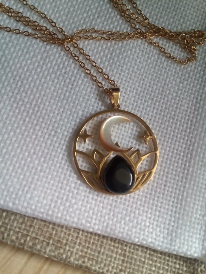 N.e'u.f prix ferme (réductions sur les lots) ☀️ pièce unique 👌 Chaîne en acier inoxydable 50 cm Perle trouée en Pierre naturelle d'onyx et lune en n'acre naturelle Si vous êtes intéressée par un lot (il faut m'envoyer les captures d'écran des articles concernés et je fais le lot 😉) : 🤍 Frais de port offert pour 2 articles 🤍 A partir de 3 articles je fais 10% sur le lot (sans déduction des frais de port) Vous trouverez aussi pierres naturelles semi précieuses d'améthyste jade labradorite kyanite ambre citrine pierre de lune onix libellule mortelle Adèle oracle magie wicca bohème fée boho cadeau bola royaumes de feu scarabé pendule sorcellerie ésotérisme dogna mode amulette bonheur ethnique santé guérison prière bible talisman huile