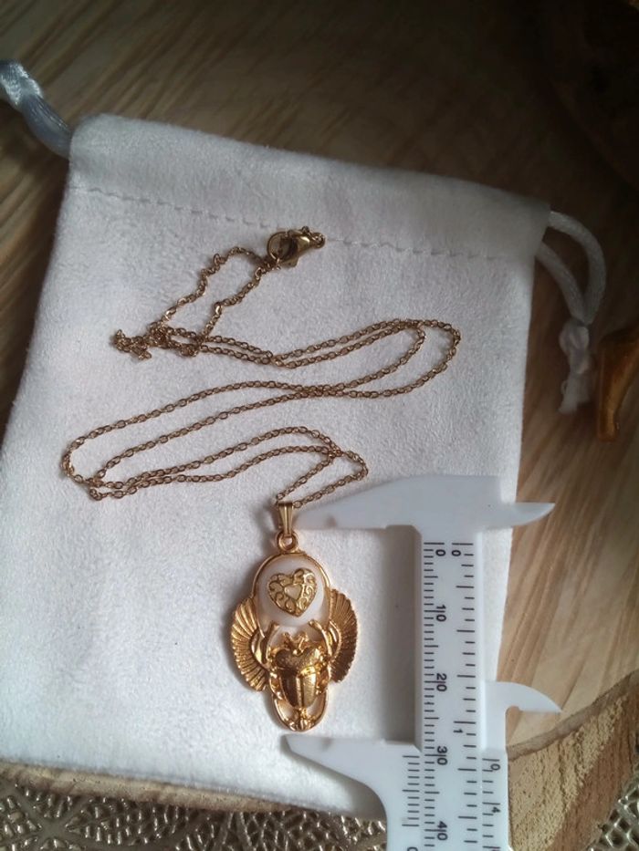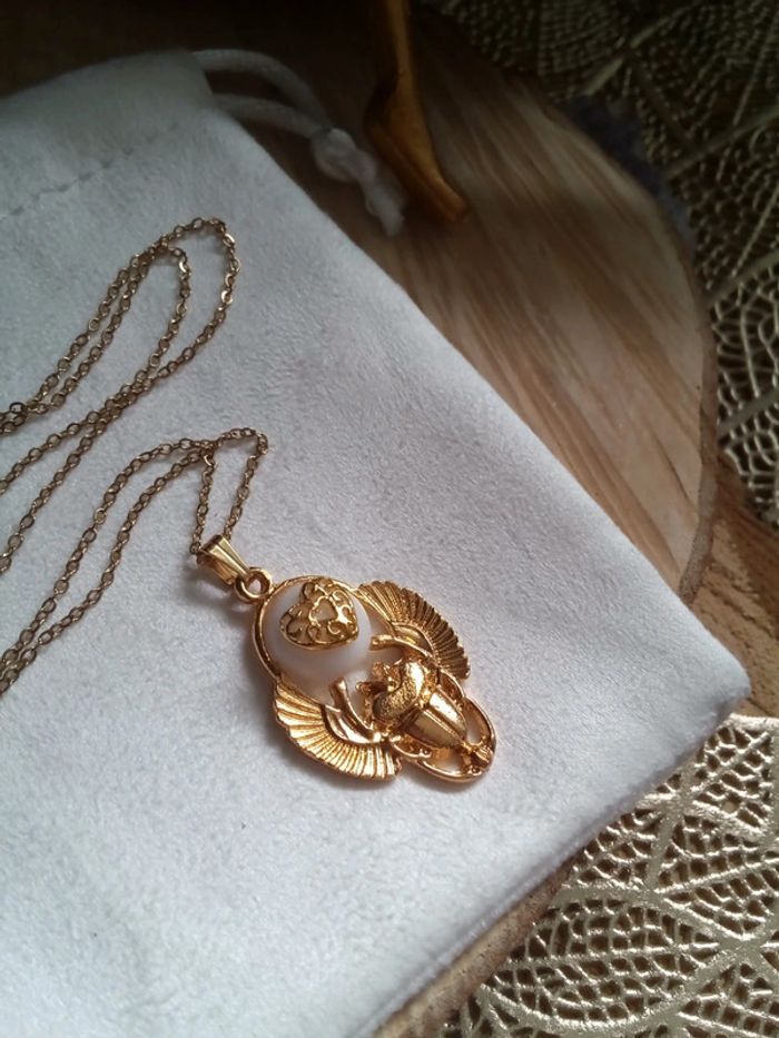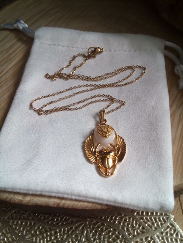 Collier scarabée et jade blanc - photo numéro 1