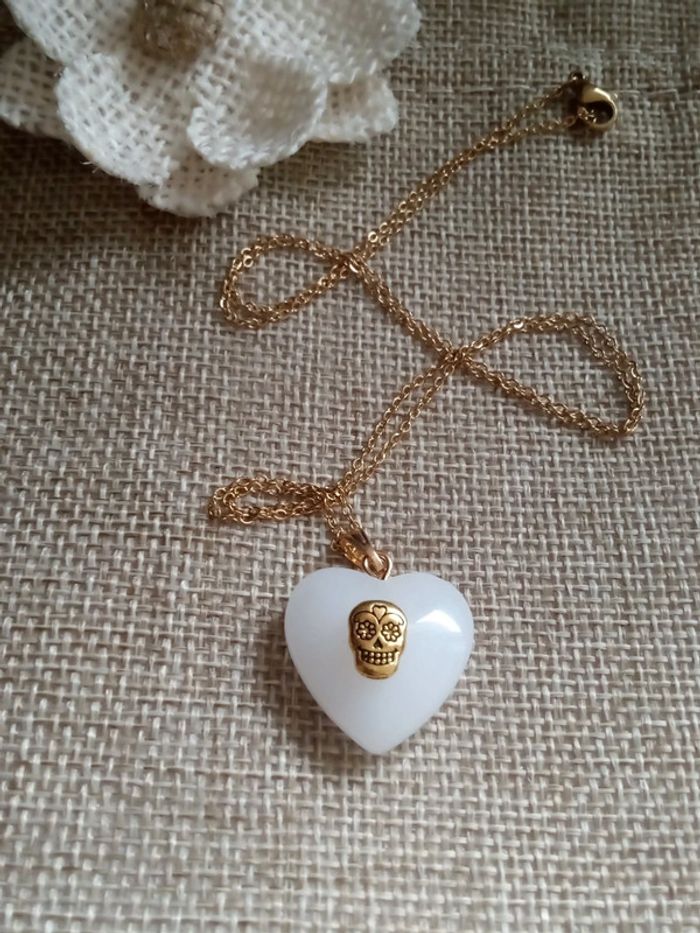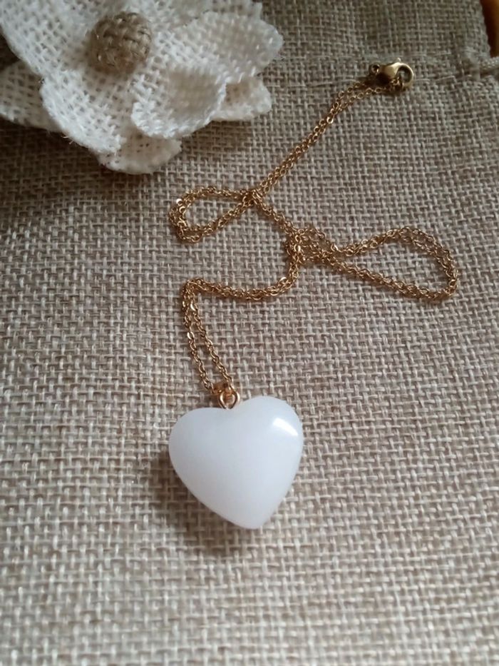 Collier coeur de jade blanc 🤍. - photo numéro 2
