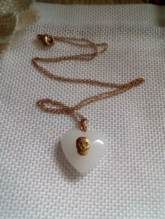 Collier coeur de jade blanc 🤍. - photo numéro 3