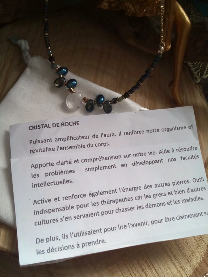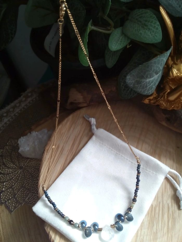 Très jolie pièce en pierres et chaîne en acier inoxydable plaqué doré 43 cm et 5 cm d'extension Pierres naturelles de cristal de quartz et d'Apatite + hématite dorée et perles de verre bleutés +perles de rocailles bleutés Prix ferme ☀️🌷 Lithothérapie Si vous êtes intéressée par un lot : 🤍 Frais de port offert pour 2 articles 🤍 A partir de 3 articles je fais 10% sur le lot (sans déduction des frais de port) Vous trouverez aussi pierres naturelles semi précieuses d'améthyste jade labradorite kyanite ambre citrine pierre de lune onix libellule mortelle Adèle oracle magie wicca bohème fée boho cadeau bola royaumes de feu scarabé pendule sorcellerie ésotérisme rituel plage vacances mariage baptême fête boho choc ethnique vintage licorne dogna mode amulette bonheur ethnique santé guérison prière bible talisman huile essentielle tarot obsidienne trèfle zircon or