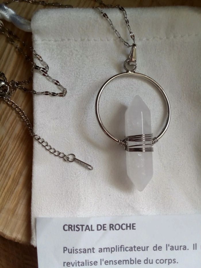Collier argenté cristal de roche - photo numéro 2