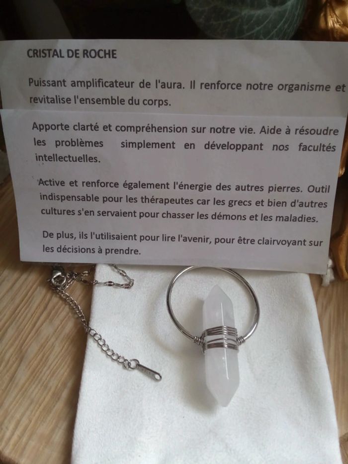 N.e.u.f Chaîne en acier inoxydable plaqué argenté 40 cm et 5 cm d'extension Pendentif avec pierre naturelle de cristal de roche Prix ferme ☀️🌷 Lithothérapie Si vous êtes intéressée par un lot : 🤍 Frais de port offert pour 2 articles 🤍 A partir de 3 articles je fais 10% sur le lot (sans déduction des frais de port) Vous trouverez aussi pierres naturelles semi précieuses d'améthyste jade labradorite kyanite ambre citrine pierre de lune onix libellule mortelle Adèle oracle magie wicca bohème fée boho cadeau bola royaumes de feu scarabé pendule sorcellerie ésotérisme rituel plage vacances mariage baptême fête boho choc ethnique vintage licorne dogna mode amulette bonheur ethnique santé guérison prière bible talisman huile essentielle tarot obsidienne trèfle zircon or