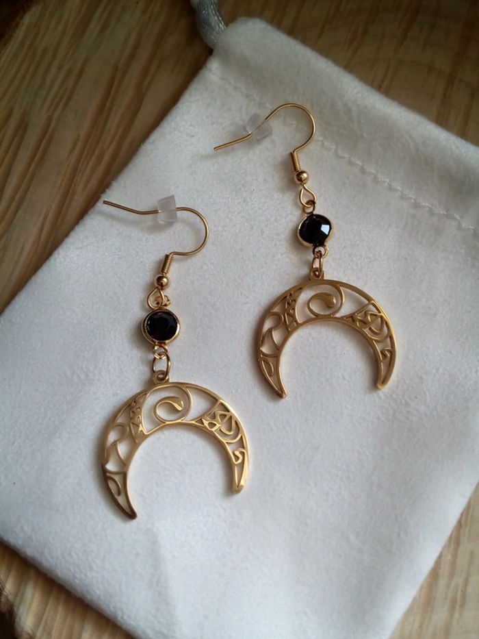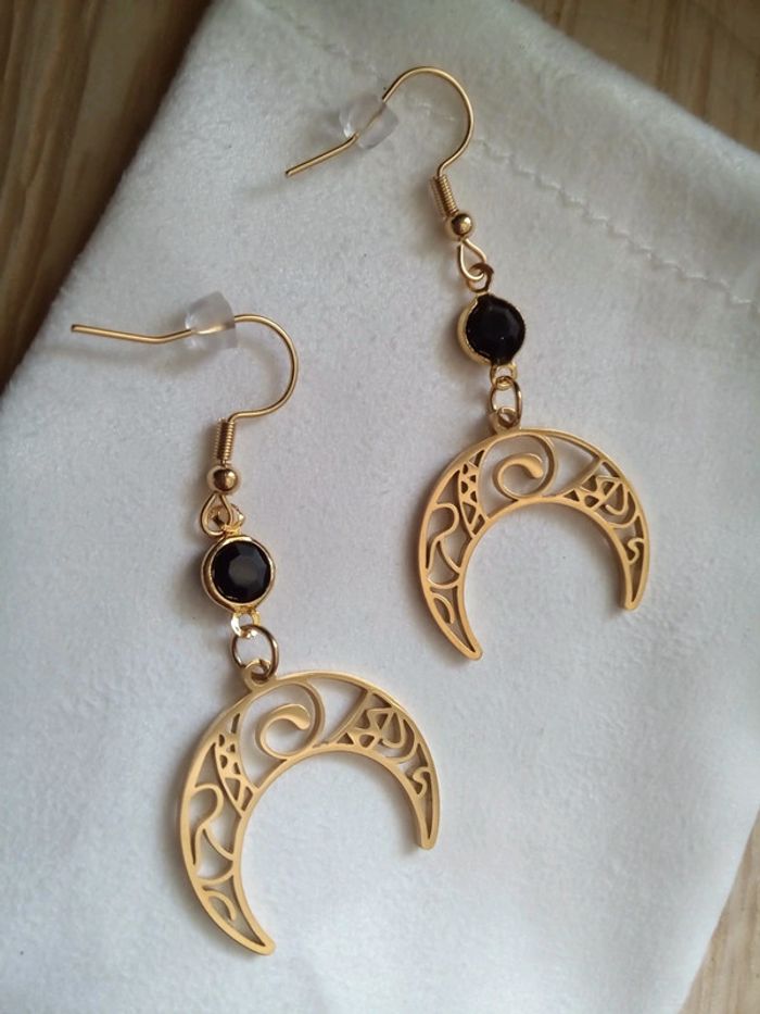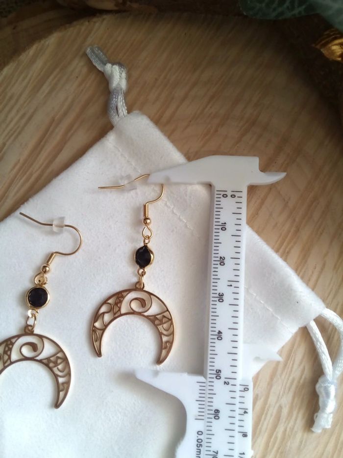 Boucles d'oreilles pierres noires et lunes - photo numéro 1