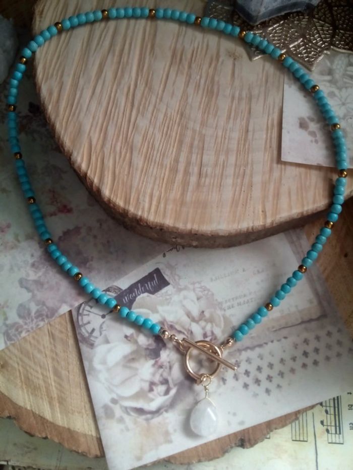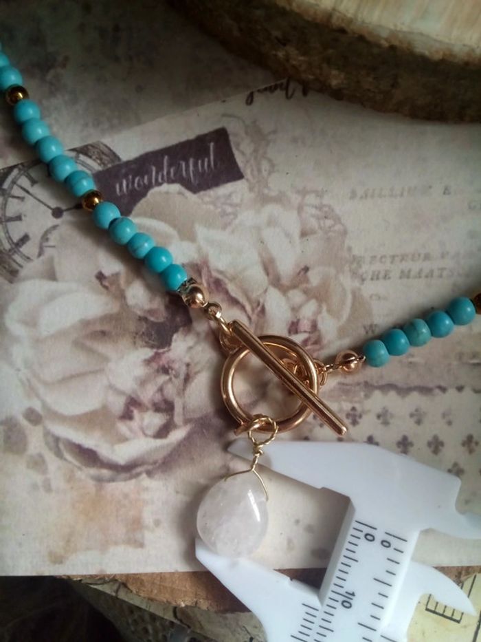 Très jolie pièce en pierres de rocailles couleur turquoise Fermoir en T Pierre naturelle de cristal de quartz Pièce unique 🤍 Prix ferme ☀️🌷 Lithothérapie Si vous êtes intéressée par un lot : 🤍 Frais de port offert pour 2 articles 🤍 A partir de 3 articles je fais 10% sur le lot (sans déduction des frais de port) Vous trouverez aussi pierres naturelles semi précieuses d'améthyste jade labradorite kyanite ambre citrine pierre de lune onix libellule mortelle Adèle oracle magie wicca bohème fée boho cadeau bola royaumes de feu scarabé pendule sorcellerie ésotérisme rituel plage vacances mariage baptême fête boho choc ethnique vintage licorne dogna mode amulette bonheur ethnique santé guérison prière bible talisman huile essentielle tarot obsidienne trèfle zircon or