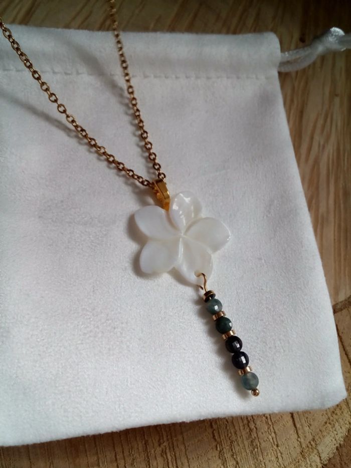 Collier fleur de n'a'c'r'e et pierres d'apatite naturelles - photo numéro 1