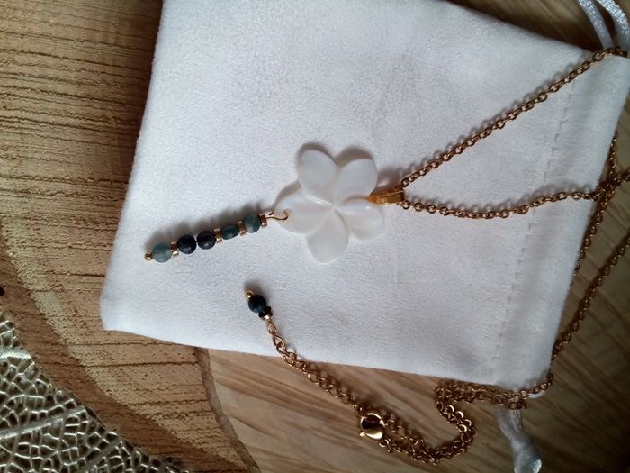 Collier fleur de n'a'c'r'e et pierres d'apatite naturelles - photo numéro 3