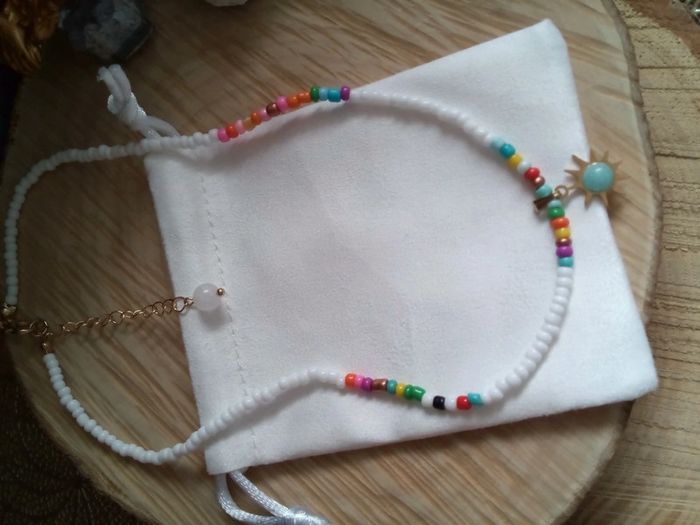 Collier perles de rocaille et soleil avec pierre d'Amazonite - photo numéro 3
