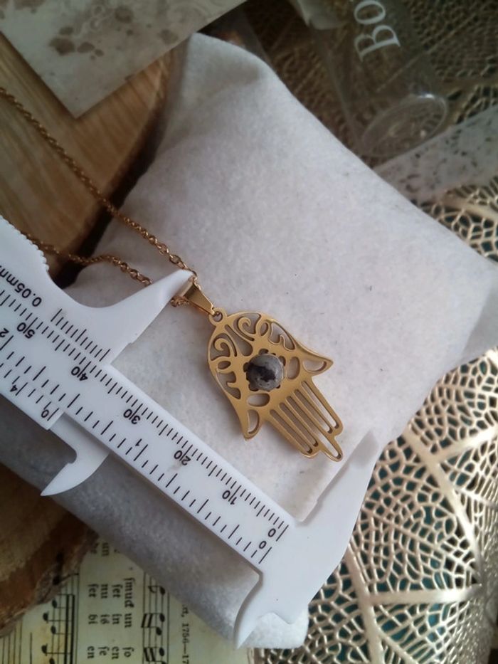 Collier protection main de fatma et pierre de labradorite - photo numéro 4