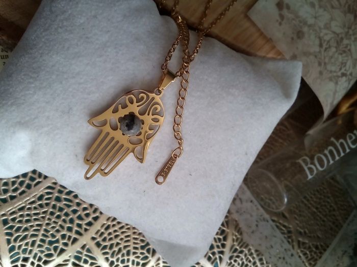 Collier protection main de fatma et pierre de labradorite - photo numéro 5