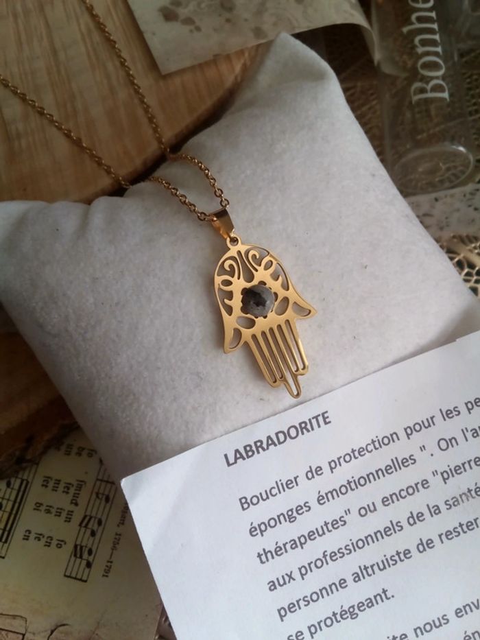 Collier protection main de fatma et pierre de labradorite - photo numéro 1
