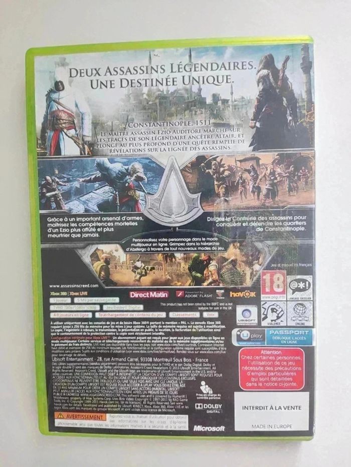 Assassin Creed révélations Xbox 360, très bon état envoie rapide et soigné sous 12/24h n'hésitez pas à faire des lots ainsi économiser sur les frais d'envoi 🐼❣️