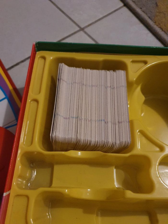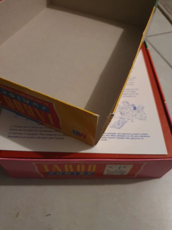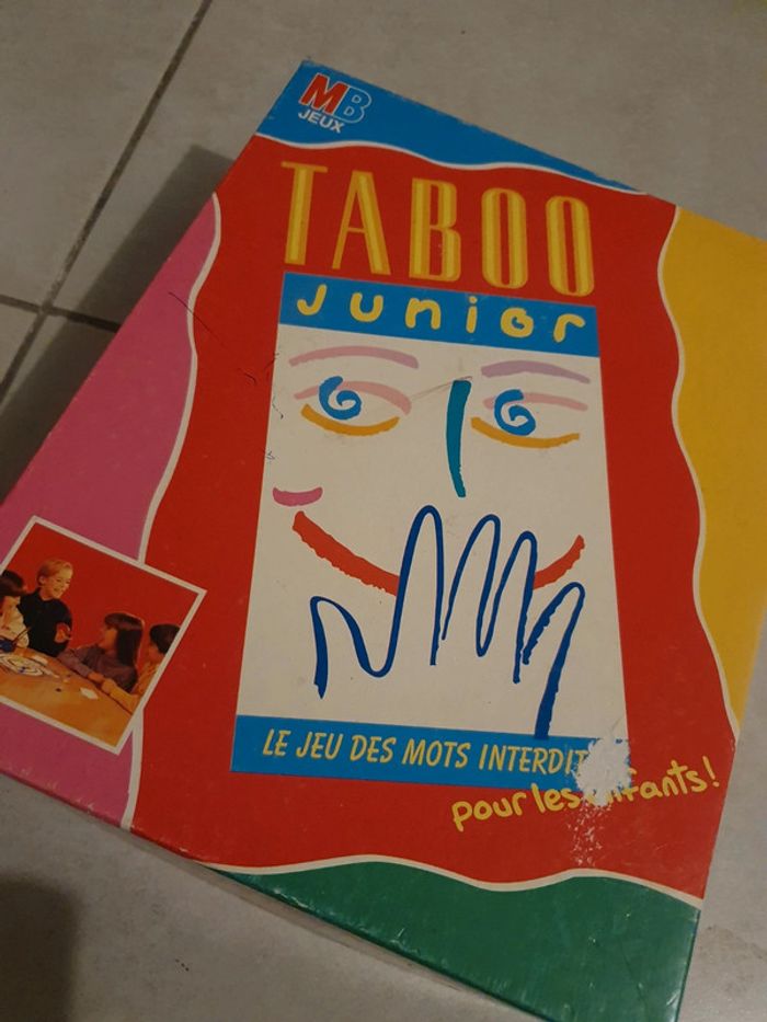 Jeu de société Taboo Junior. Complet (je n'ai simplement pas compté les cartes mais le paquet est assez gros). Boite abîmée (voir photo). Sinon bon état intérieur. #jeu #jeux #jeudesociete #taboojunior #taboo #MB