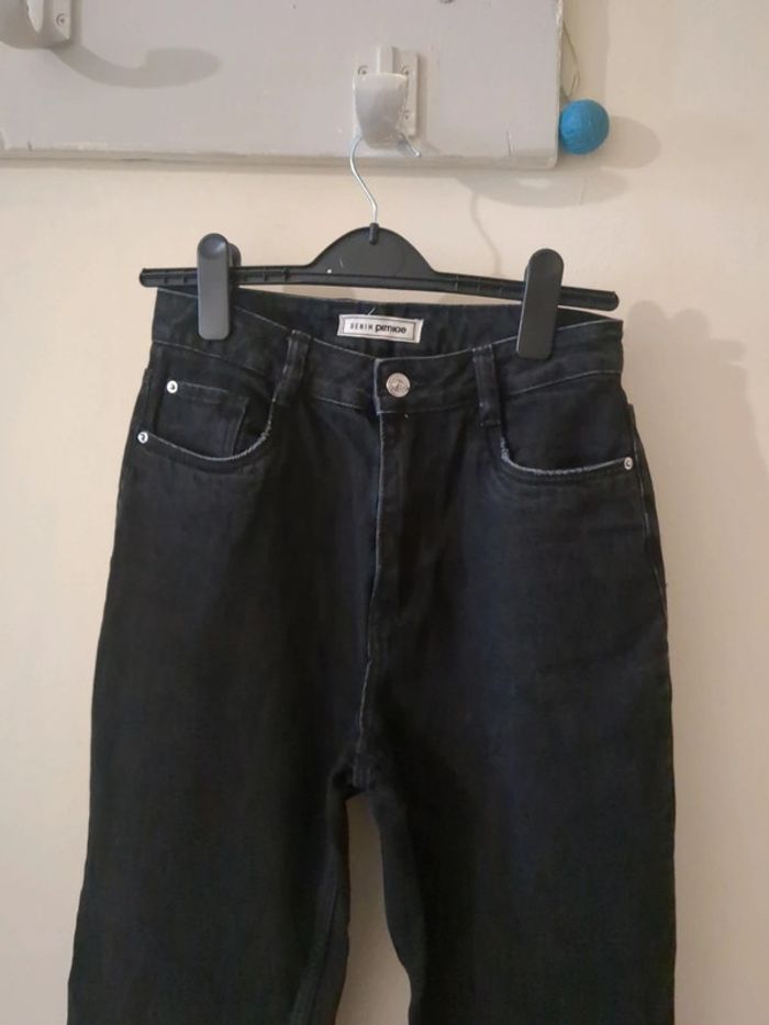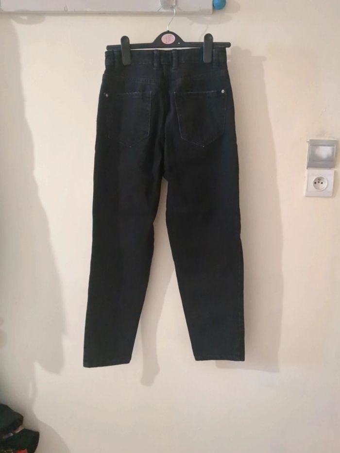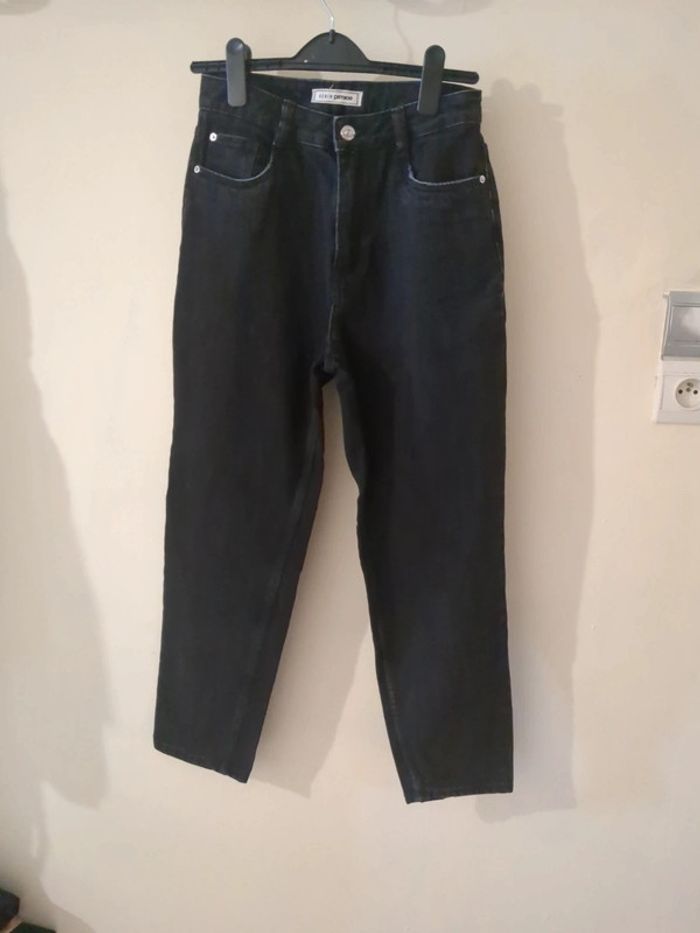 Taille haute, coupe mom. Taille 34, XS. Coloris noir. Très bon état. 👉 Maison non-fumeur, sans animaux. 👉 Remise en main propre secteur Lille possible. 🌺Voir mes autres annonces beaucoup de cosmétiques bio, vegan, solide en vente mais aussi livres, jouets, vêtements femme et enfants, chaussures, accessoires, bijoux... RÉDUCTION SUR LOT DES 2 ARTICLES🌺