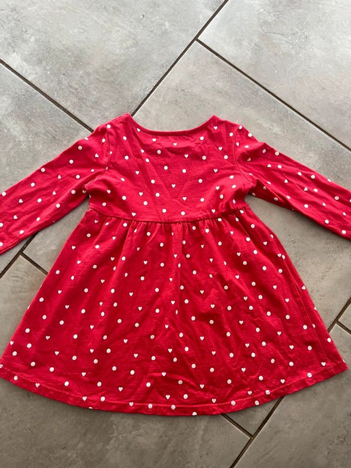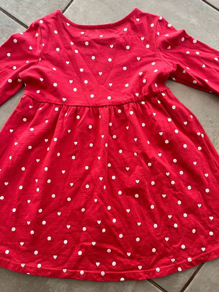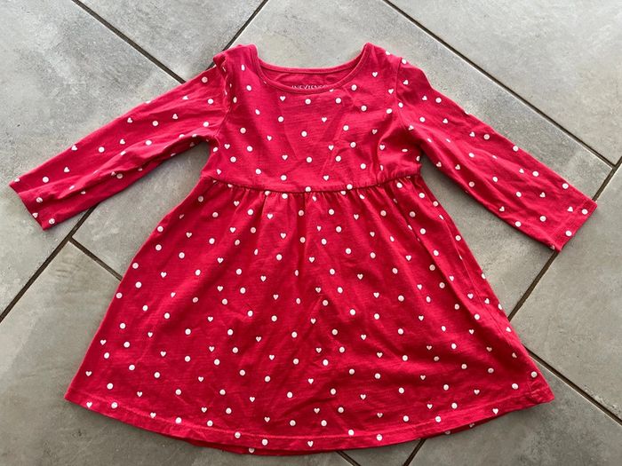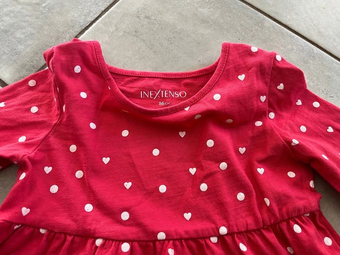 Robe fille In Extenso taille 18 mois / 86 cm Manche longue, col rond Couleur rose fuchsia motif cœur 🤍et rond blanc 100% coton En bon état