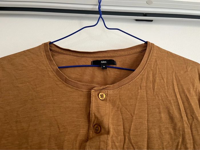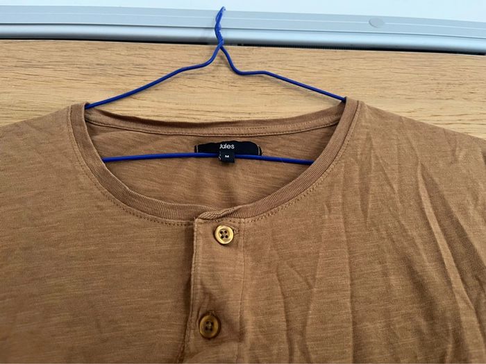 T-shirt Tee shirt manche courte homme Jules taille M Couleur camel / marron Col rond avec bouton 100% coton En excellent état, peu porter