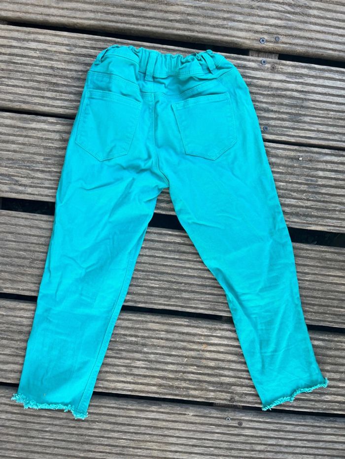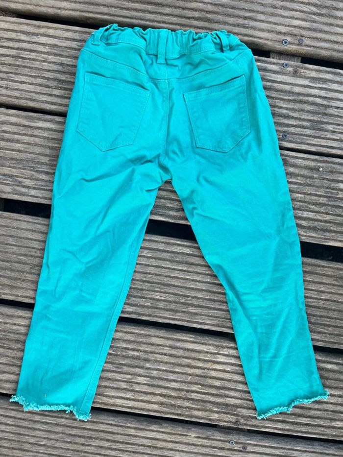 Pantacourts jean’s fille Skinny by Kiabi taille 9 ans (132-137 cm) Couleur bleu turquoise frangé sur le bas Taille élastique 98% coton 2% elasthanne En excellent état peu porter