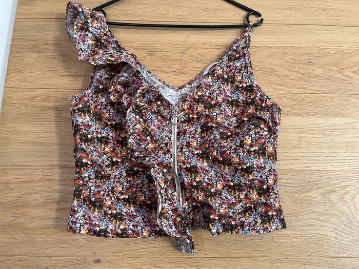 Haut court croq top H&M taille 44 Motif florale 100% coton Fermeture éclair dans le dos En excellent état