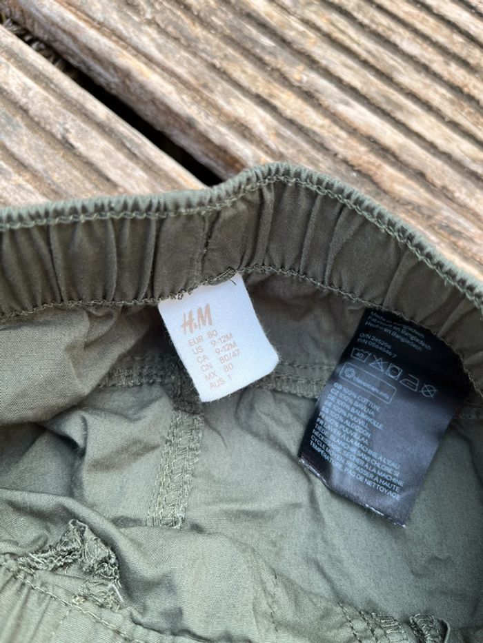 Pantalon en toile H&M bébé garçon taille 9-12 mois / 80 cm 100% coton Couleur kaki Taille élastique avec cordon de serrage En excellent état
