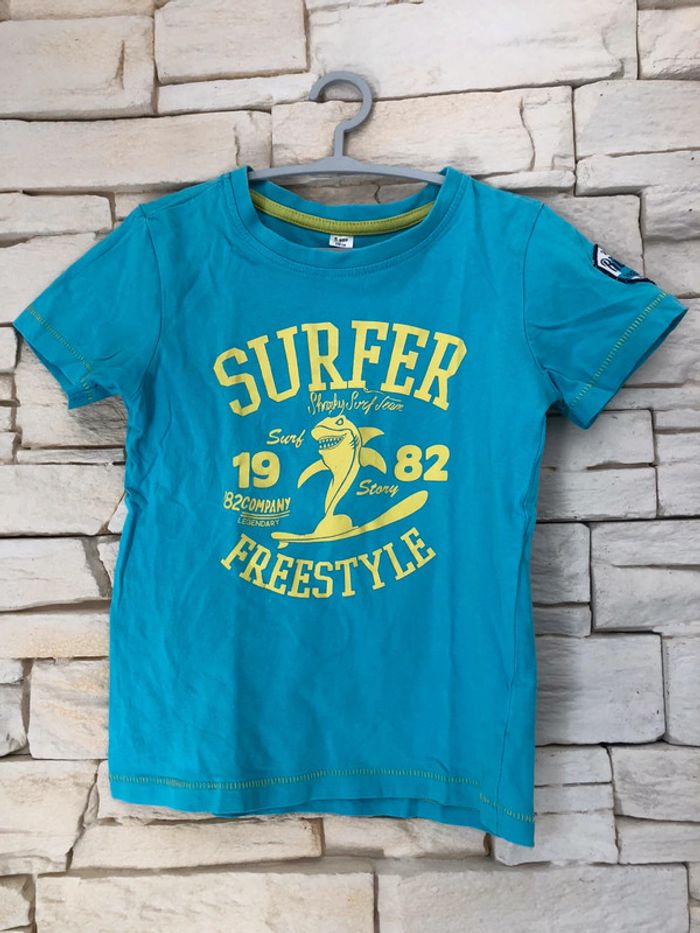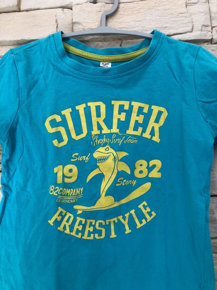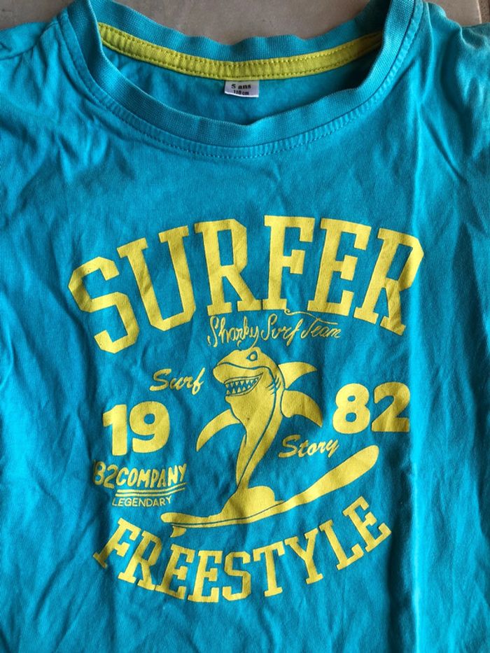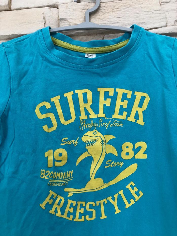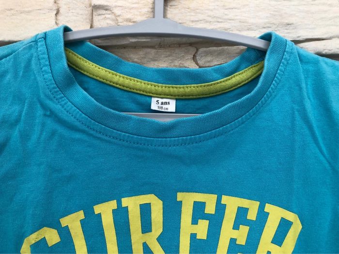 T shirt tee shirt enfant garçon 5 ans - 110 cm Couleur bleu turquoise « surfer » 100% coton En excellent état