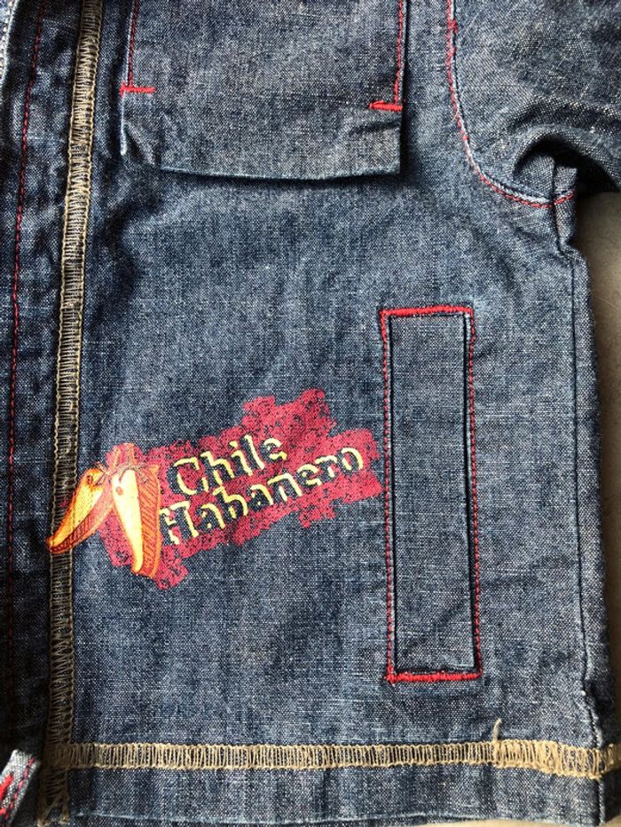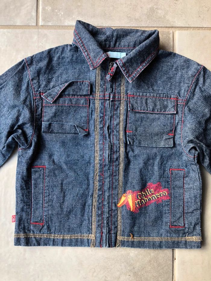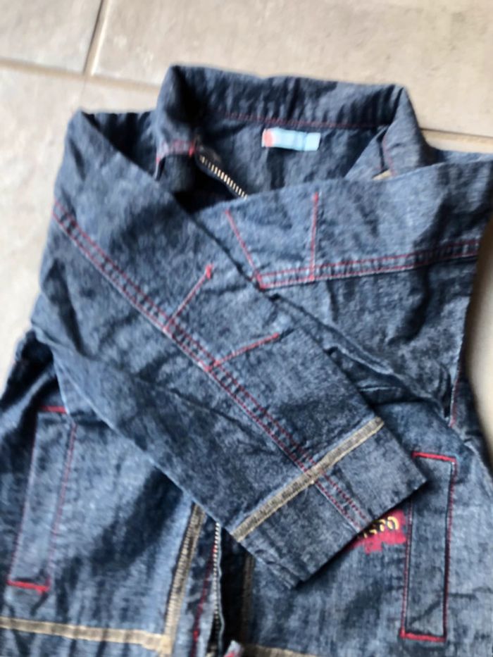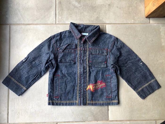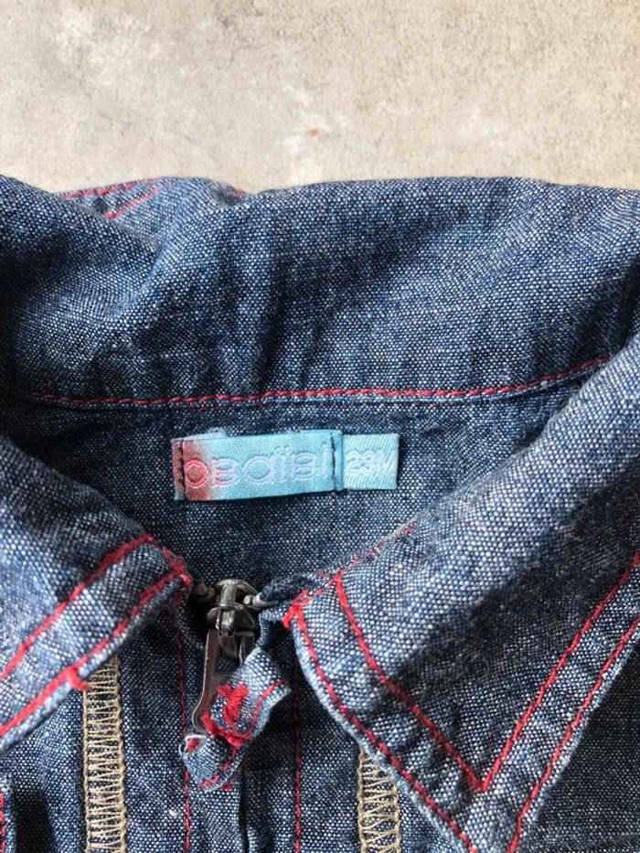 Veste en jean Obaïbi taille 23 mois garçon 100% coton en excellent état couleur bleu marine surpiqûres rouge
