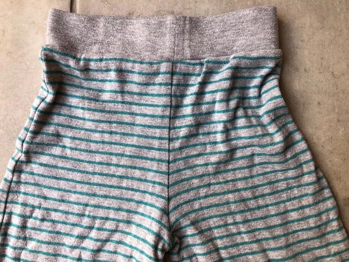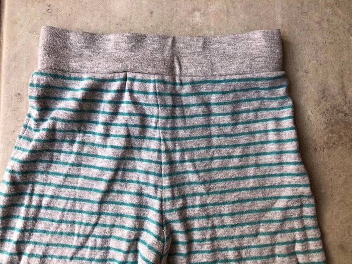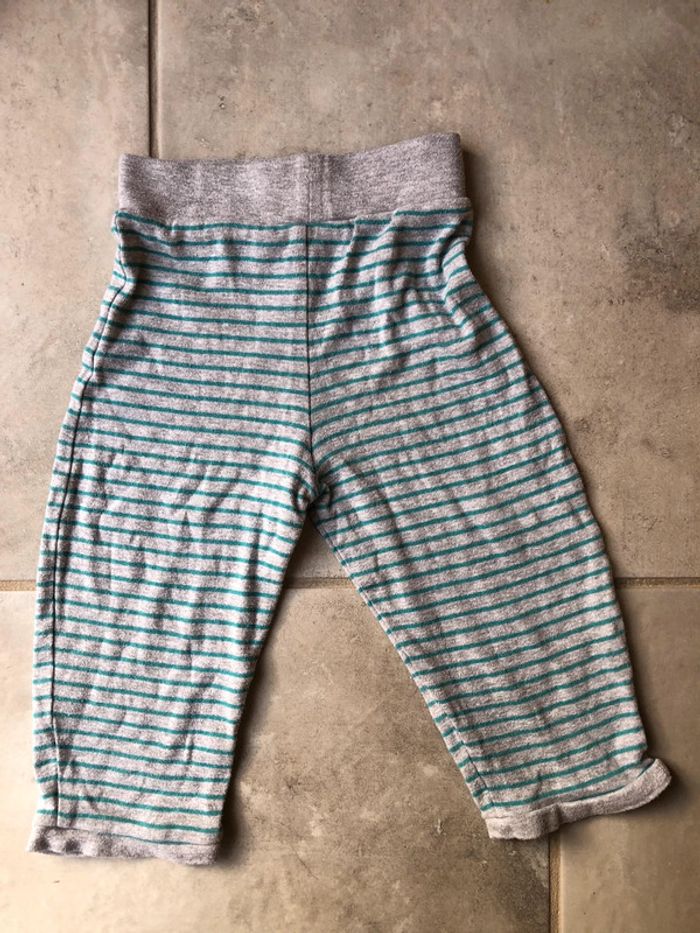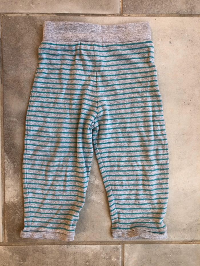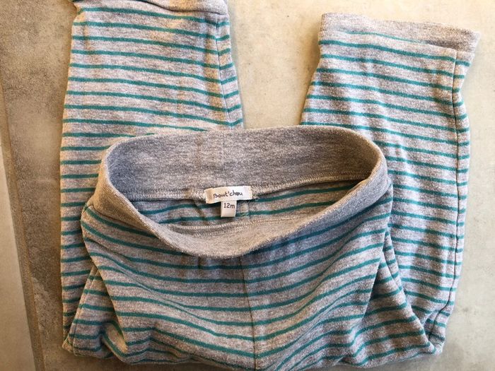 Bas de pyjama jogging Bébé garçon Bout’chou taille 12 mois - 74 cm 91 % coton - 9% polyester gris rayure turquoise / menthe en bon état (très légère bouloche )