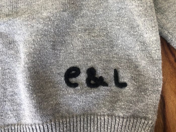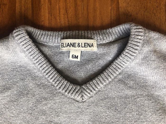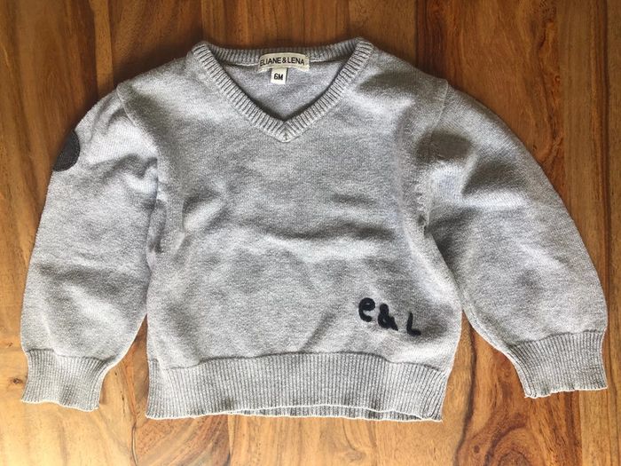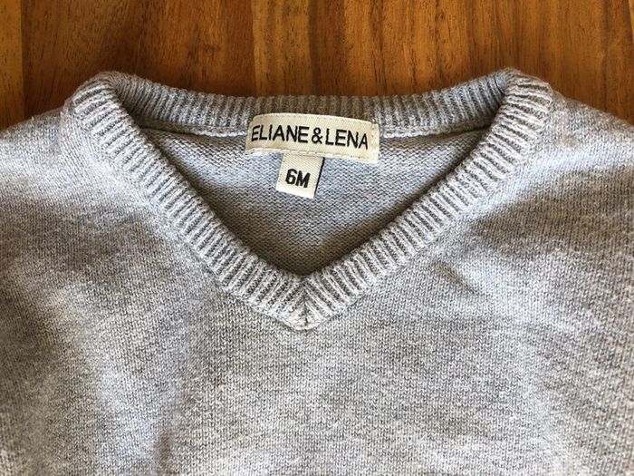 Pull gilet col V bébé garçon Eliane et Léna taille 6 mois 100% coton couleur gris sigles E&L