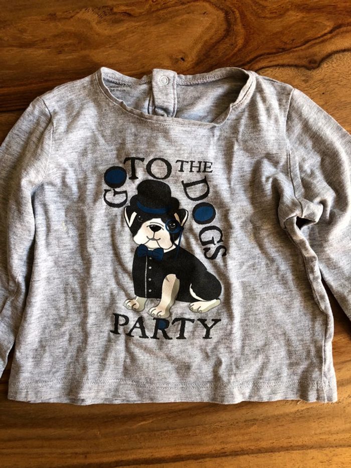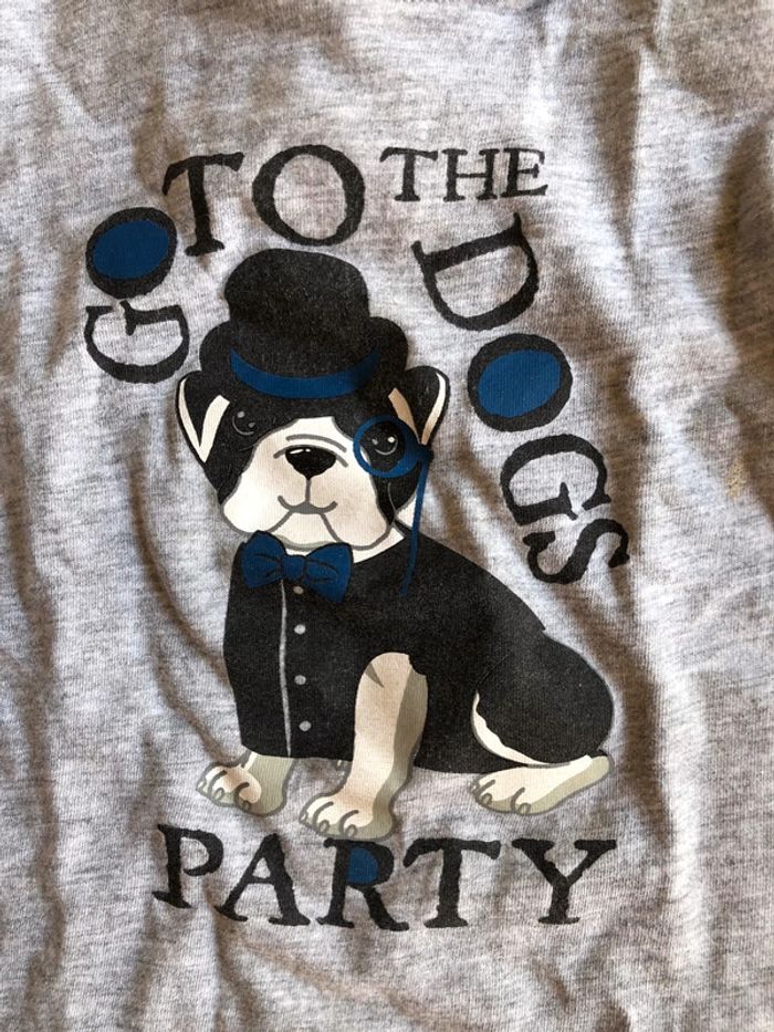 Tee-shirts t-shirt manche longue enfant bébé garçon Bébé Rêve taille 24 mois / 88 cm en excellent état couleur gris avec un chien « Go to the Dogs Party »
