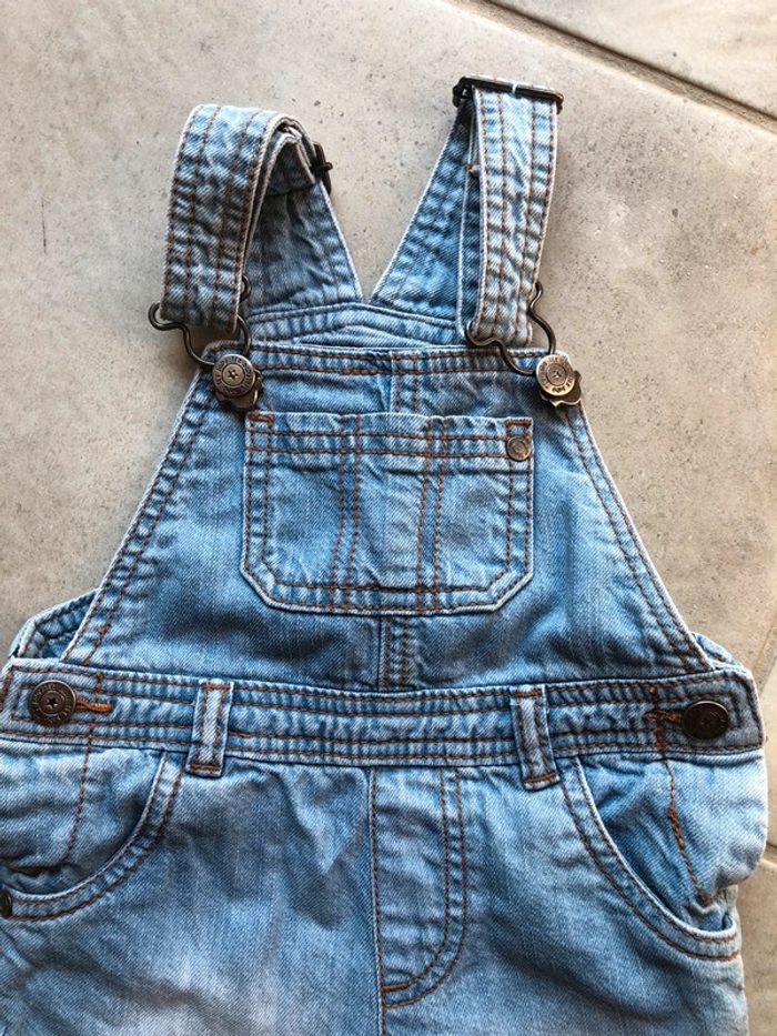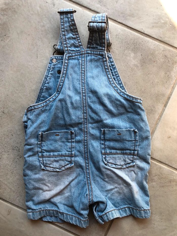 Salopette jean bébé garçon Tex Baby 12 mois couleur bleu clair avec de nombreuses petite poche en excellent état