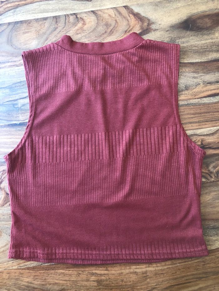 Croq top sans manche haut New Look taille 14 ou M couleur Bordeaux en très bon état (3 petit accros dont 2 dans l’intérieur de l’encolure)
