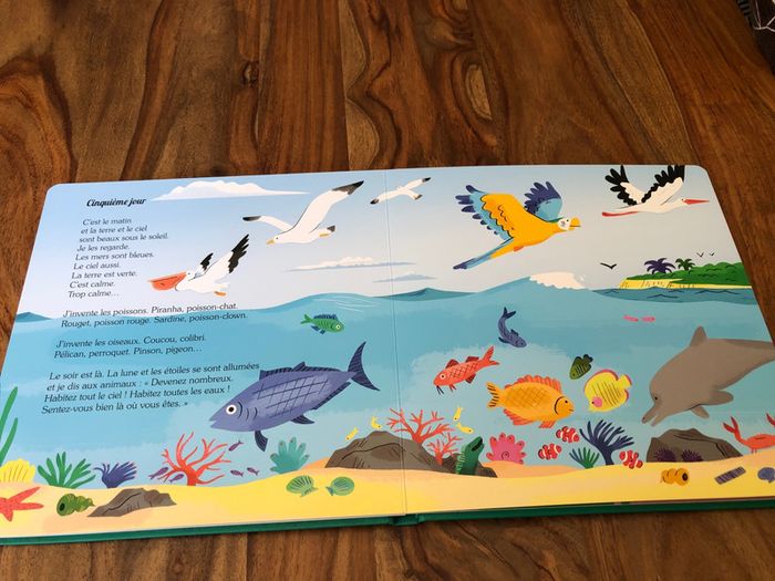 Livre enfant « Pour te dire que la Terre est belle » neuf jamais utilisé La fabuleuse histoire de la Création du monde est ici racontée aux enfants. Une double page est consacrée à chacun des 7 jours de la Création.