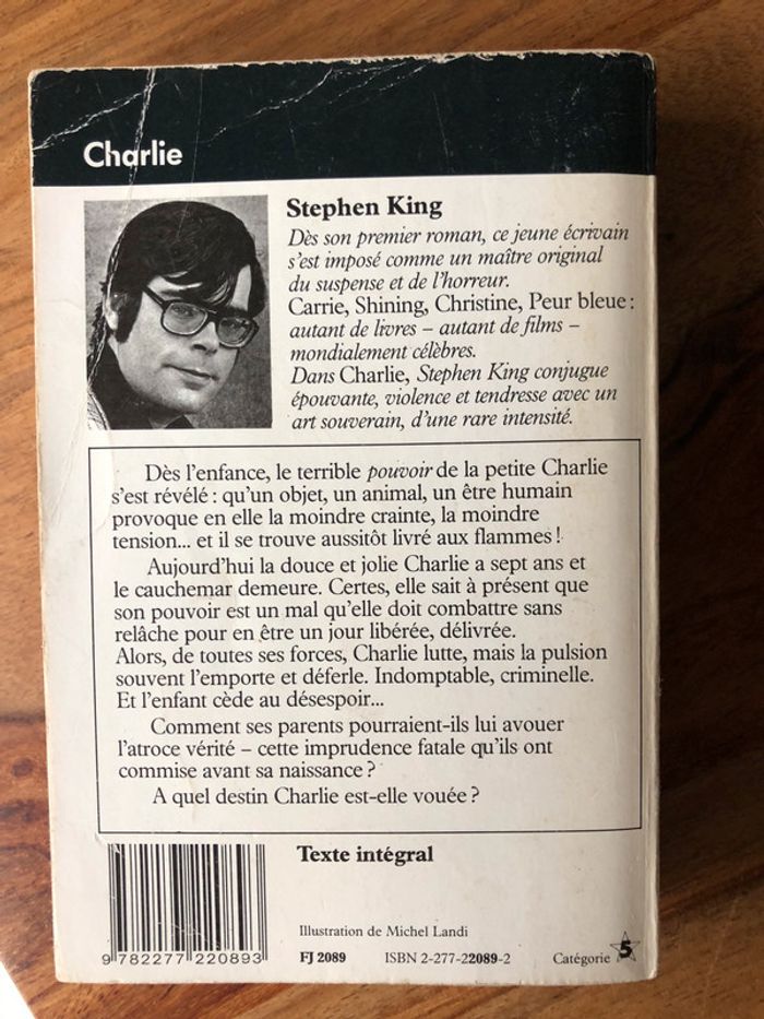 Livre roman Charlie - Stephen King - épouvante - collection j’ai lu