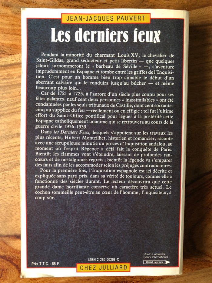 Livre Roman - Les Dernier feux - Jean-Jacques Pauvert chez Julliard en très bon état