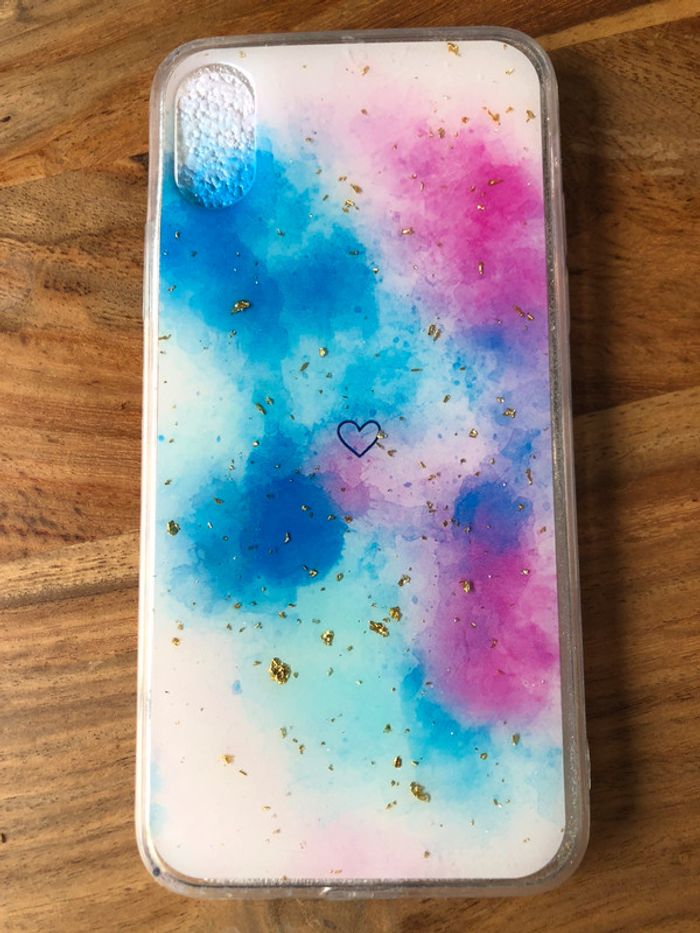 couleur bleu et rose avec des éclats doré et un coeur au centre
