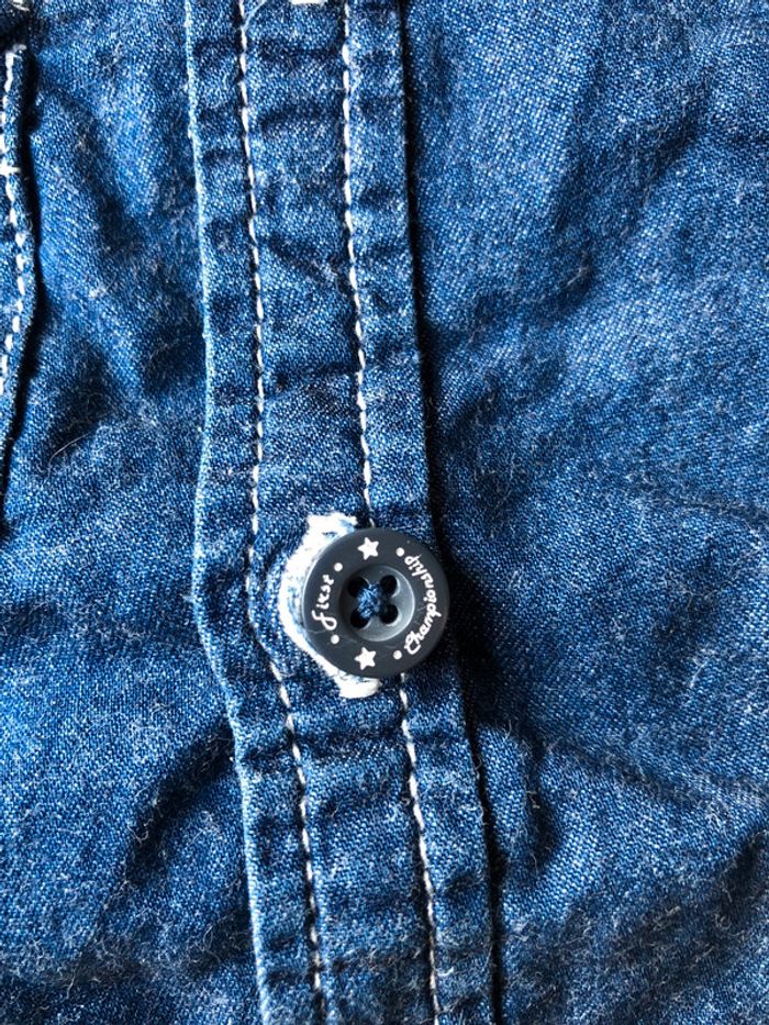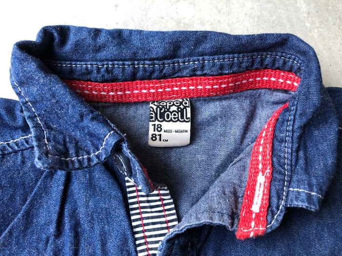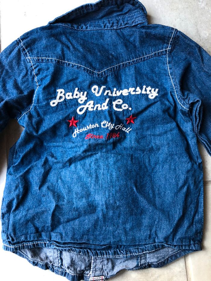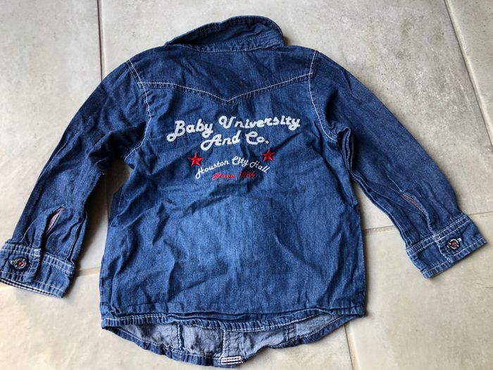 Chemise bébé garçon Tape à l’œil 18 mois / 81 cm manche longue 100% coton aspects jean couleur marine « Baby University And Co » en excellent état porter 1 fois