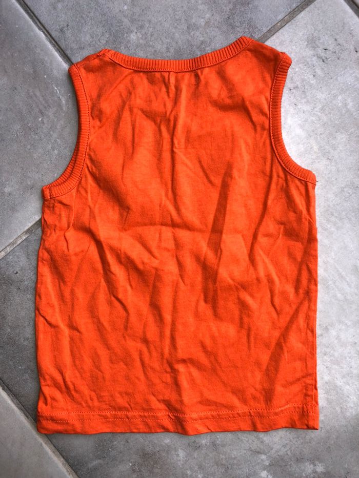 T-shirt débardeur garçon 18 mois / 77-82 cm Kiabi couleur orange avec baleine sur le devant 100% coton en excellent état