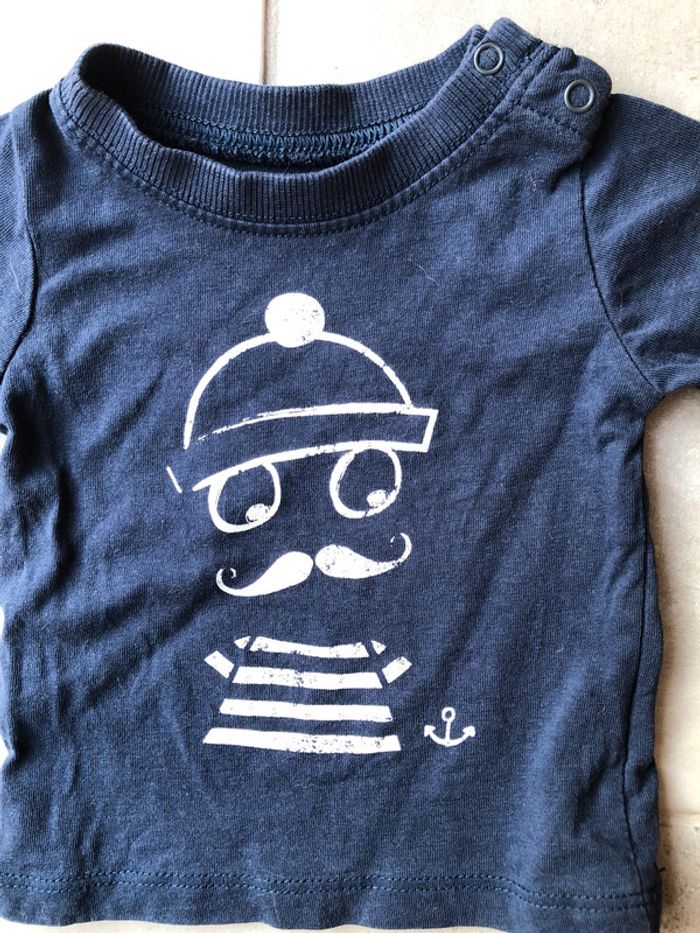T-shirt bébé garçon Babyfab fabulous baby Tape à l’oeil taille 3 mois - 59 cm couleur bleu marine avec petit marin en blanc en très bon état 100% coton