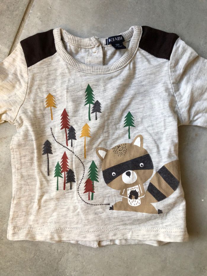 T shirt haut manche longue bébé Kiabi 3 mois / 56-62 cm / 6 kg comme neuf porter une fois (antivol encore présent, pensez à le couper !! ) couleur blanc gris avec un petit raton laveur