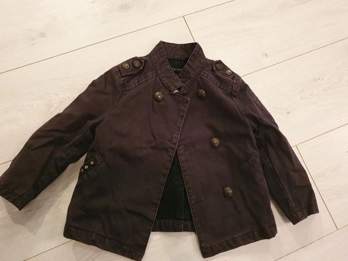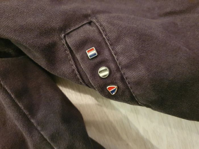 Souvent portée Couleur difficile à déterminer : gris/bleu Manque 2 boutons sur le devant, 1 peut être recousu car attaché dans la veste (voir photo)