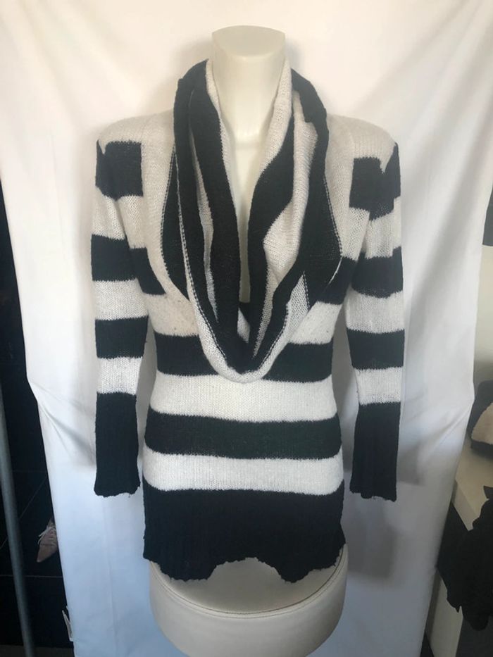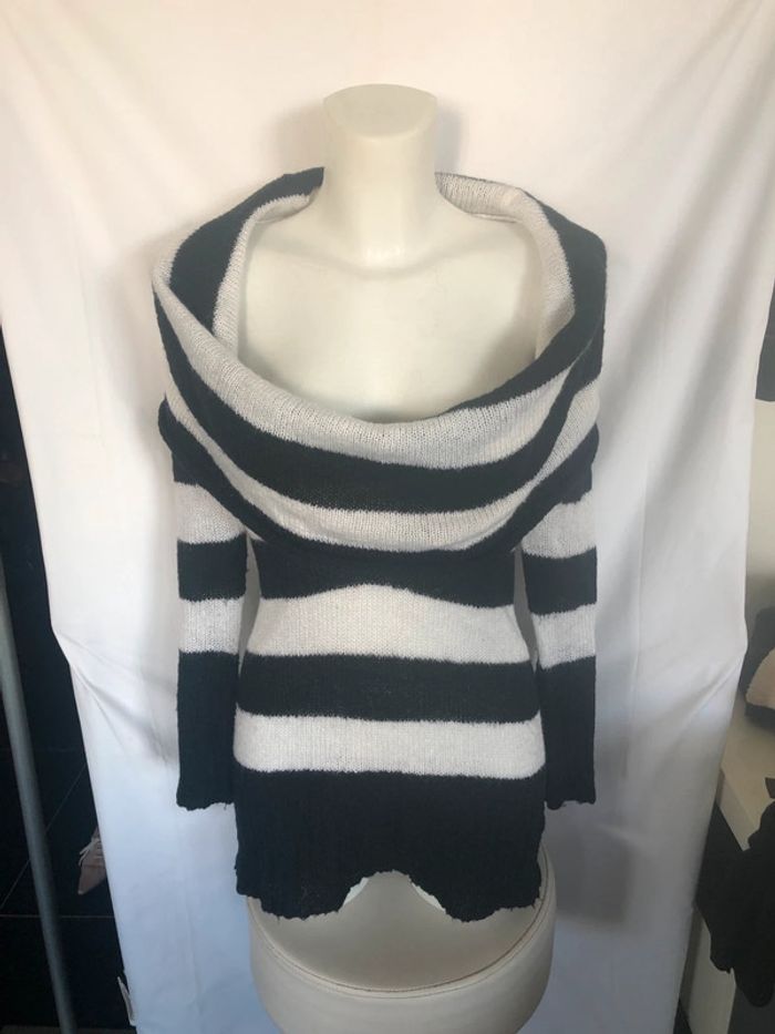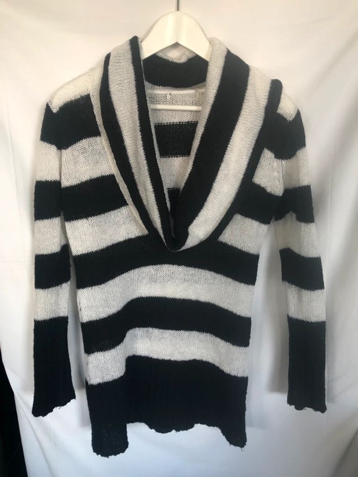 Long pull col roulé rayé noir et blanc taille 36 / 38 bon état - photo numéro 1